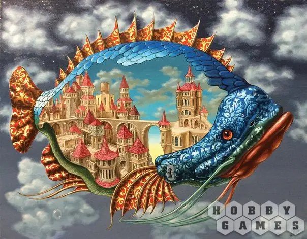 Человек всегда мечтал взмыть в небо как птица. Но один волшебный народ рассудил иначе. Вместо птицы рассекать синеву неба взмыла удивительная рыба, а вместе с ней в путешествие отправился целый город! Глубоко под чешуёй этого летающего чуда вы обнаружите множество зданий с завораживающей архитектурой. Здесь вы увидите высокие шпили дворцов, мосты, раскинувшиеся над зданиями, а так же домики местных жителей. Тут живут изобретательные хранители ключей и замков. О том, как они выглядят и чем занимаются, вы сможете узнать из фрагментов самого пазла. Все фигурки уникальны и представляют собой жителей, их работу или городские постройки.