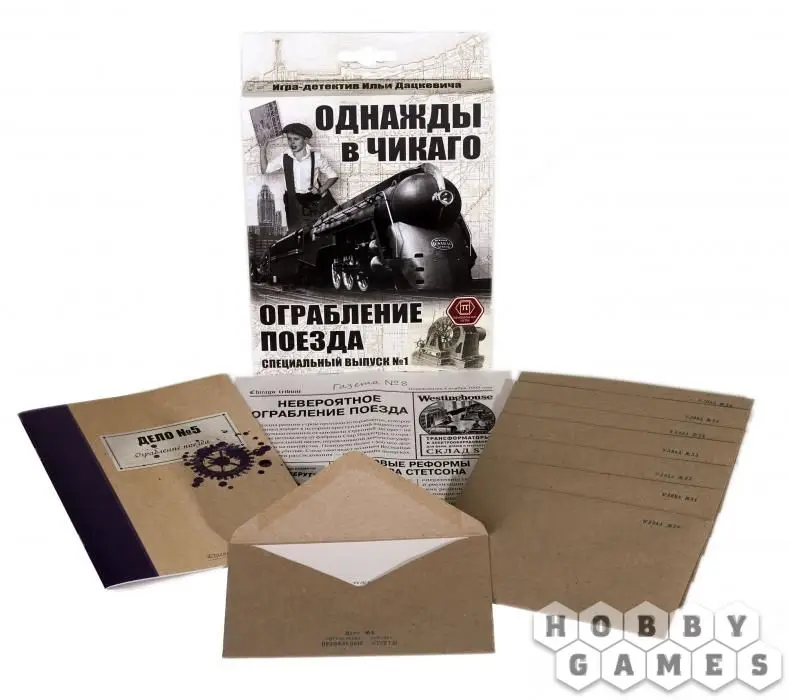 "Ограбление поезда" – это дополнение для настольной игры "Однажды в Чикаго", которое предлагает игрокам разгадать ещё одно запутанное дело.