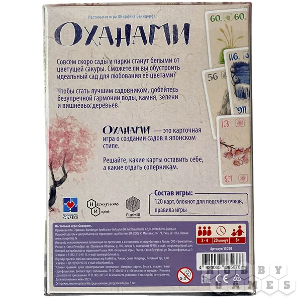 Оханами – это давняя японская традиция любования цветами, которая идёт в одном ряду с восхищением осенними листьями клёна или полной луной. Это уникальная часть японской культуры, которая очаровывает своей простотой и изяществом. А ещё "Оханами" – это настольная игра, в которой вы станете городскими садовниками, готовящимися к одному из самых значимых праздников. Ваша задача – создать на своём участке парка очаровательные аллеи, которые привлекут множество посетителей и принесут вам победные очки. Чтобы достичь вершины мастерства, стремитесь к гармонии между водой, камнем, зеленью и цветущими вишнёвыми деревьями, создавая парк мечты!