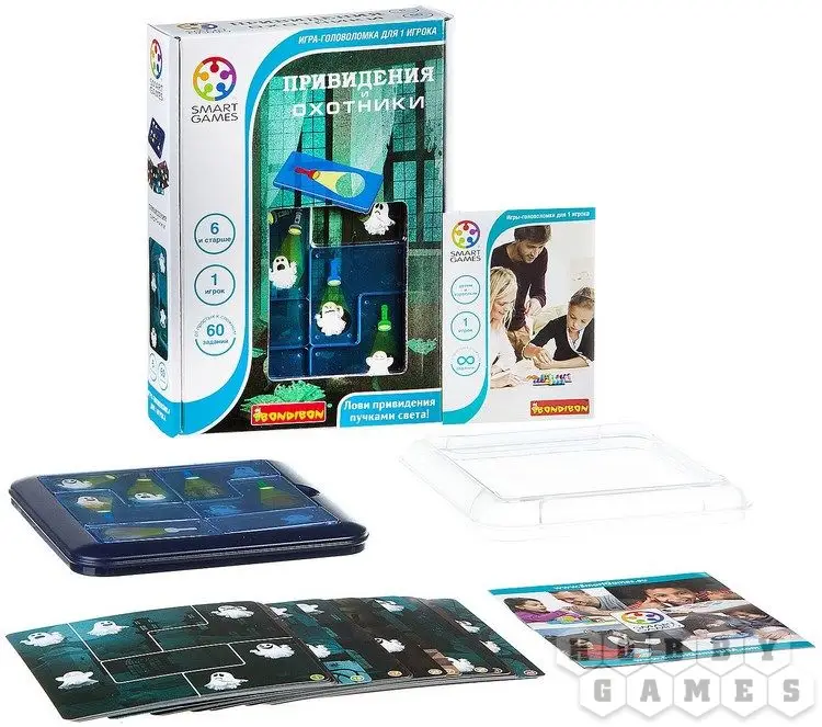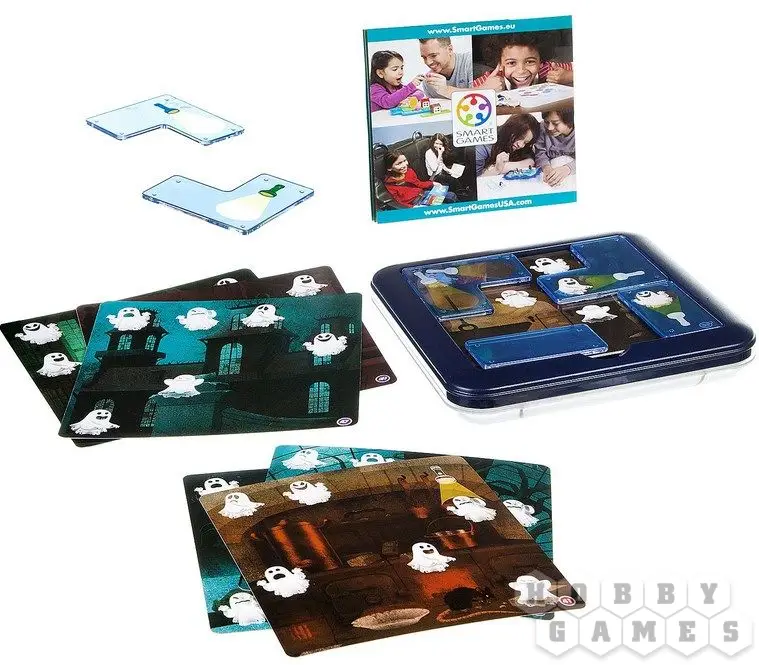 Вы когда-нибудь задавались вопросом, что призраки делают в доме? Станьте охотником в этой игре, чтобы узнать! На поле настольной игры-головоломки "Охотники и Привидения" располагаются маленькие привидения, и вам необходимо разместить пластиковые тайлы с фонариками так, чтобы каждое из них оказалось подсвеченным.