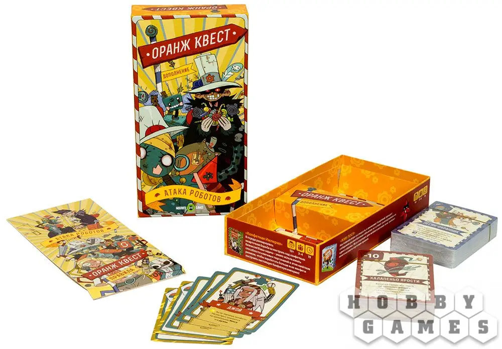"Оранж квест" получил своё первое дополнение! Теперь Вы можете сделать свои приключения ещё интереснее! Дополнение "Атака роботов" вернёт Вас в мир, где конфеты в дефиците и полакомиться сладеньким – большая редкость. Вас ждут неизведанные местности, множество невероятных событий и огромное количество новых врагов! В базовой игре Вашим главным боссом был Конфетный Джо, каждый герой уже успел победить его по несколько раз. Джо больше не хочет проигрывать и взял в союзники роботов! Роботы – мощные боссы, а драться с ними в разы сложнее. Чтобы у игроков были хоть какие-то шансы, в Вашем распоряжении будет целый арсенал новых карт.