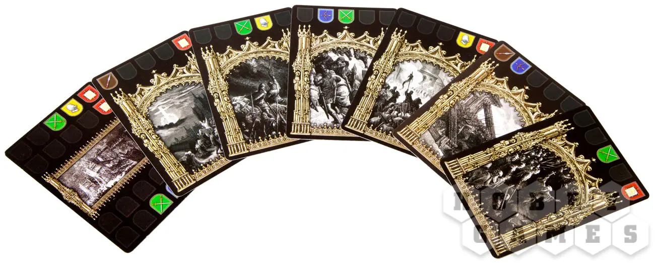 Каждому игроку в начале партии раздаются карточки-отряды. В ваши отряды могут входить мечники, лучники, копейщики, рыцари или исторические персонажи, которые были вдохновителями или участниками крестовых походов. Каждый ход вы боретесь за влияние на территориях с помощью своих войск. Вы можете укреплять свои позиции, выкладывая больше карт на одну территорию, или распределять свои войска по разным, чтобы узнать реакцию оппонентов.