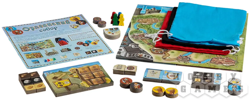"Орлеанский Собор" – это кооперативная стратегия для всей семьи, где игроки вместе строят картонную 3D-модель собора, соединяя секции по номерам. Вам предстоит добывать ресурсы, собирать витражи и выполнять заказы, чтобы получить чертежи для строительства. Уникальность игры – в её механике: вы управляете подданными, размещая их на поле для выполнения действий. Каждый ход – это выбор: отправиться за товарами, переместиться в другой город или помочь заполнить заказ в мастерской.