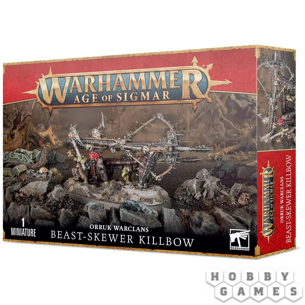 На поле боя Зверобойный лук оставит мало шансов вражеским гигантам: лишь самые выносливые чудовища способны выстоять после обстрела зазубренными снарядами. В расчёт этого орудия входят меткий стрелок-оррук (orruk) и несколько помощников-гротов (grots), что задирают друг друга между выстрелами. Если вашей армии Военных Кланов Орруков (Orruk Warclans) нужна дальнобойная поддержка, это осадное орудие – великолепный выбор.