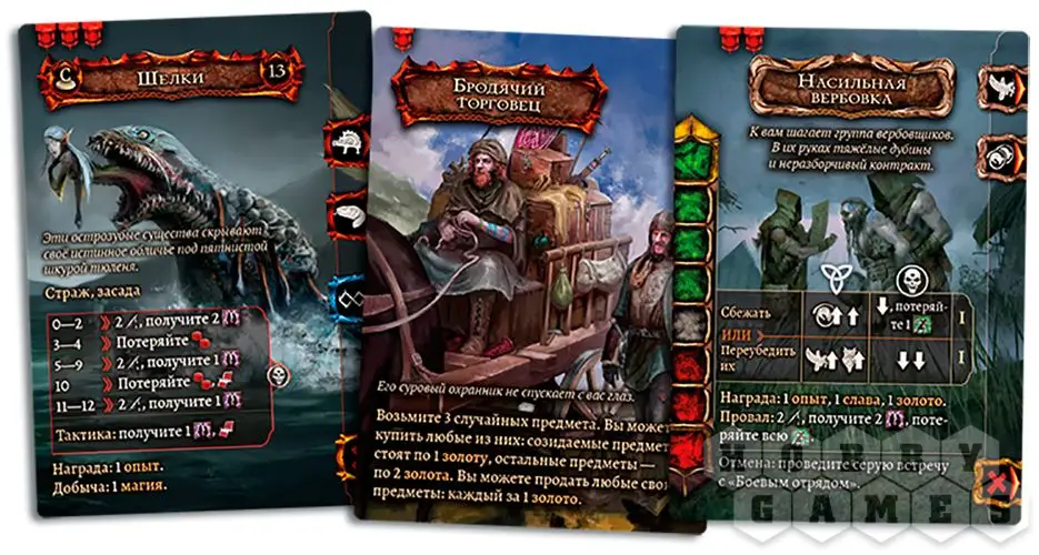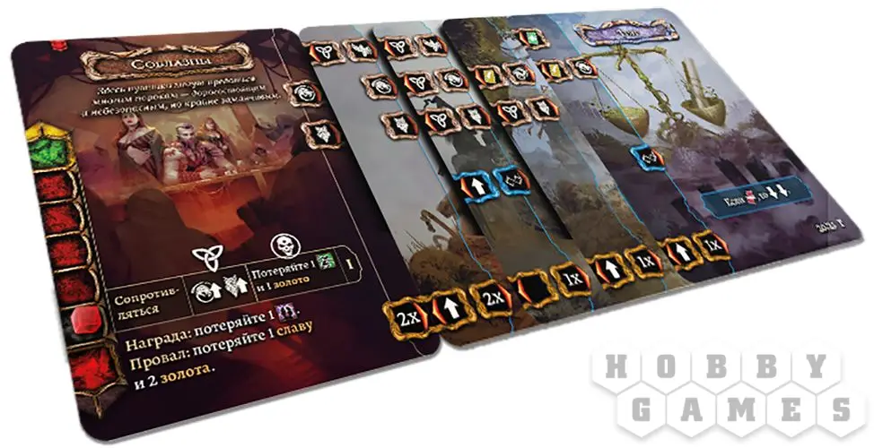 Успешно завершив встречу, вы получите награду: полезные предметы и ресурсы, один из которых — опыт. Тратя опыт, вы сможете улучшить характеристики своего персонажа и его личные колоды боя и дипломатии, убрав из них слабые карты и/или добавив более сильные. Эти дополнительные карты тоже уникальны для каждого персонажа.
