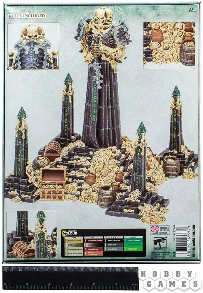 Этот детализированный пластиковый набор состоит из шестидесяти деталей, с помощью которых можно собрать один Нексус Костяной Десятины (Bone-tithe Nexus), высота которого почти двадцать сантиметров и достигает высоты самого Нагаша.