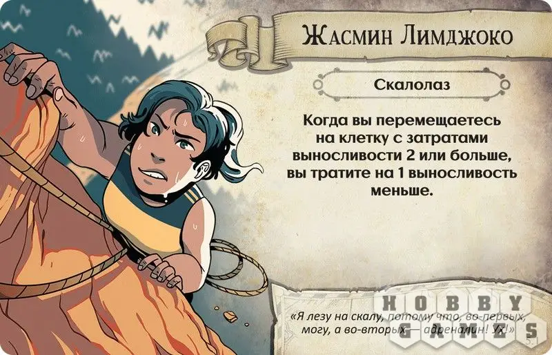 Герои, как и большинство других компонентов в игре, случайно подобраны и Вы не узнаете, какие персонажи Вам достались, пока не откроете коробку. Все герои обладают навыками, которые пригодятся для выживания в условиях дикой природы. Как знать, может быть, Вам достанется лесоруб, и Вы с легкостью раздобудете древесину, или выбор падёт на альпиниста, который сможет преодолеть даже отвесные скалы. Персонажи очень сильно влияют на подход к игре.
