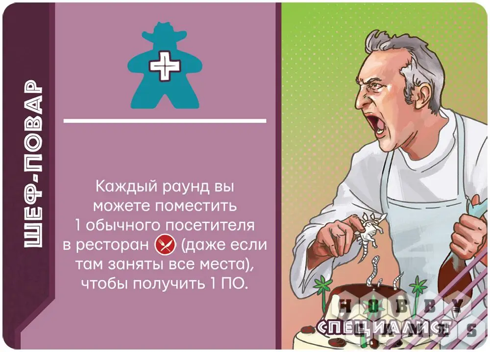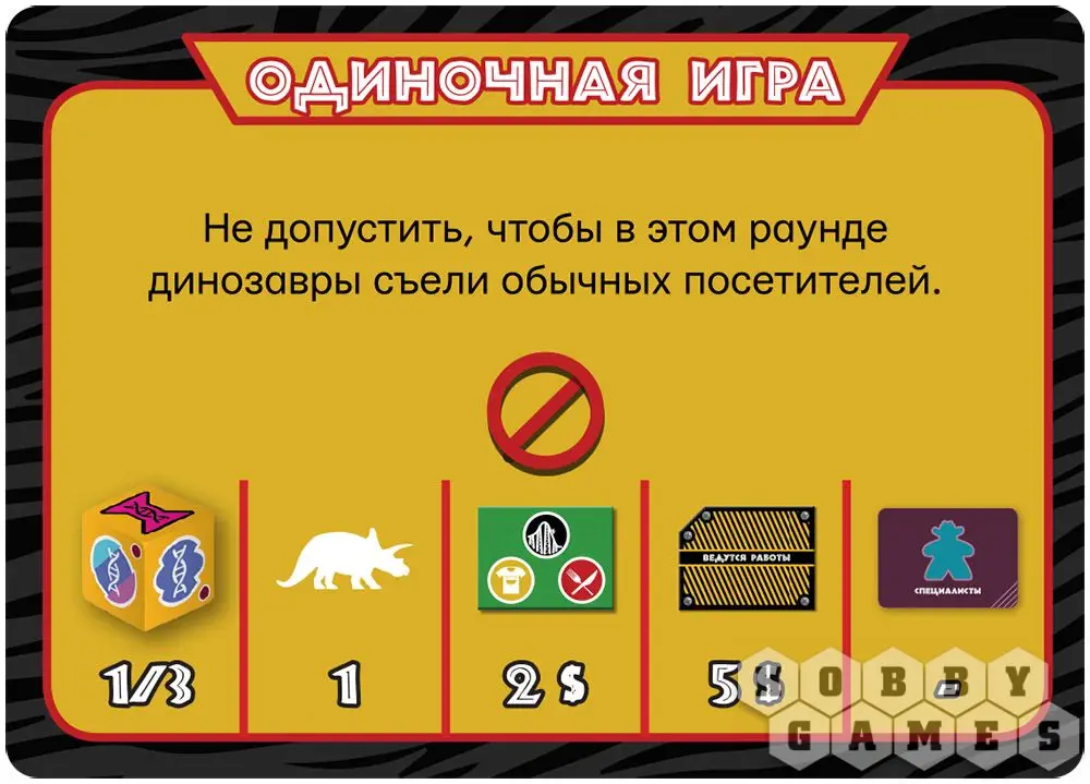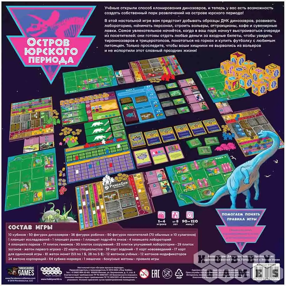 И тут Вас ждёт уйма работы: нанимать подходящий для парка персонал, шпионить за противниками, следить и использовать новые технологии клонирования. Но есть и другие сферы деятельности – строительство аттракционов, павильонов и ресторанов. Но главное – не забыть про меры безопасности... Представляете, что случится, если ваши милые питомцы вырвутся из своих вольеров! Также на протяжении партии игроки будут стараться выполнить задания, от которых зависит условие окончания игры.