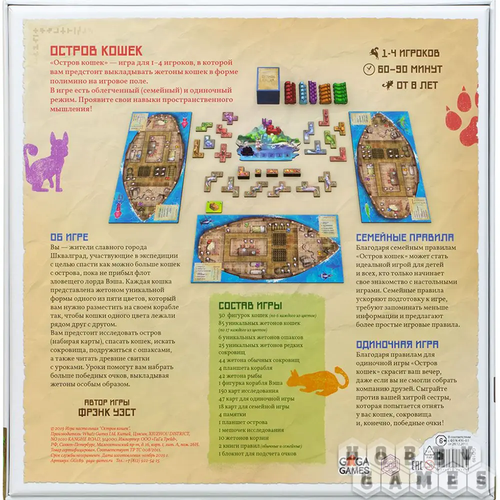 Исследуйте остров с помощью механики драфта карт, определив, какие загадочные открытия вы хотите совершить. Используйте различные корзины, чтобы перенести кошек на ваш корабль, изучите древнейшие свитки и узнайте, как осчастливить пушистых аборигенов. Отыщите затерянные сокровища и позаботьтесь об утраченных реликвиях, а если вам повезёт, то вы встретите редчайшую породу кошек – ошаксов.