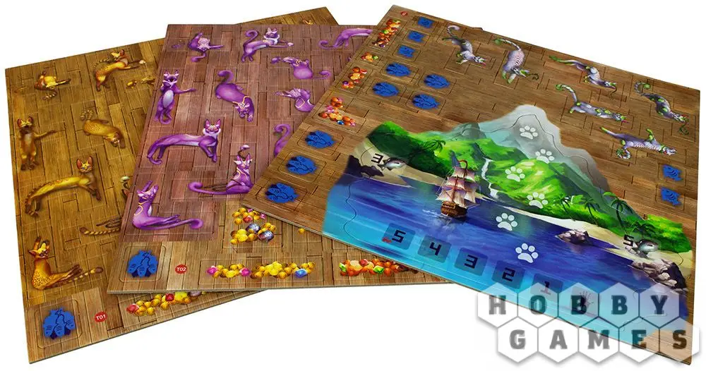 Игра "Остров кошек" разработана так, чтобы каждая партия была уникальной. Совершайте открытия, подружитесь с ошаксами, выполняйте личные цели, заполняйте каюты, ловите крыс и спасите как можно больше кошек!