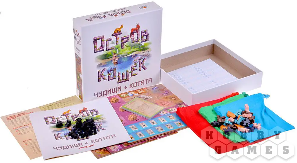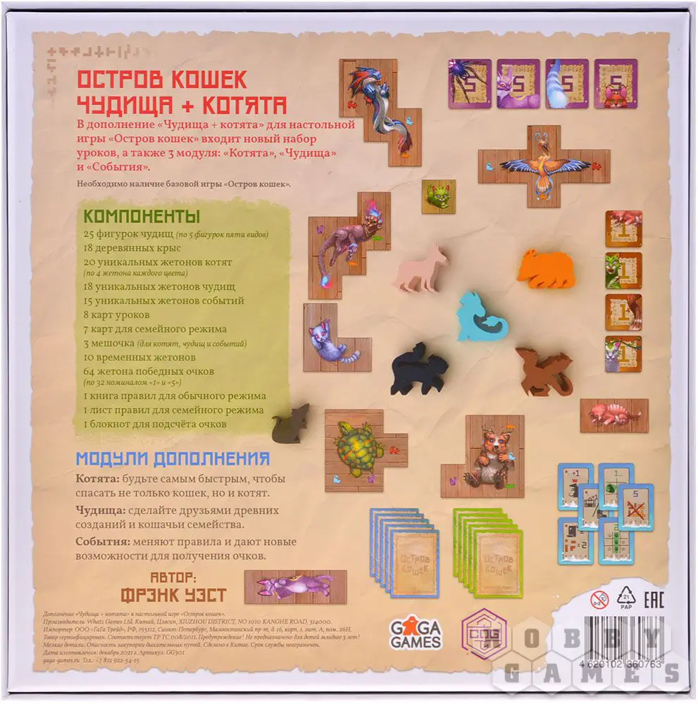 В дополнении "Чудища + Котята" вы найдёте новые правила и компоненты для основной игры! В коробке содержатся карты уроков и целых три дополнительных игровых модуля, благодаря которым "Остров кошек" заиграет новыми красками.
