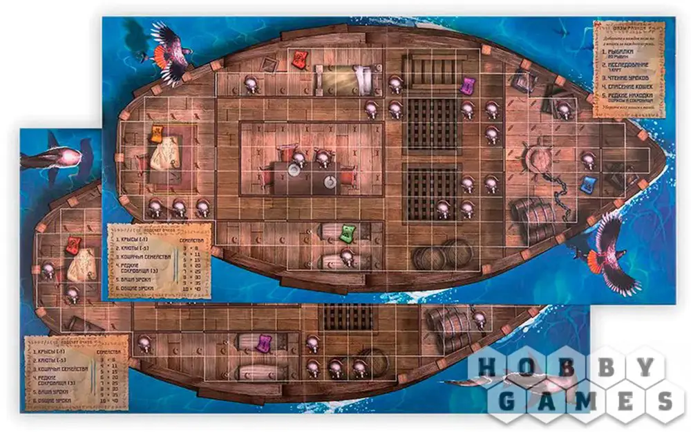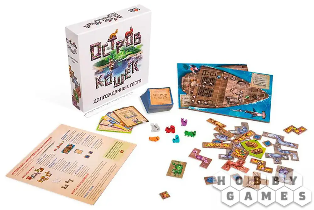 Дополнение "Долгожданные гости" позволяет играть в "Остров кошек" впятером и вшестером! Больше игроков – больше веселья, неожиданных поворотов в игре и, самое главное, больше спасённых котиков. В дополнении вы найдёте не только совершенно уникальные планшеты кораблей для двух игроков со своим собственным расположением кают, но и новые жетоны с требующими спасения кошками и несметными сокровищами, а ещё – карточки для увеличенного количества игроков. Карточки добавляются в игру, если спасателей пятеро или шестеро, а если их меньше – стоит ограничиться карточками уроков. Карточки уроков дают игрокам задания, которые можно выполнить по ходу игры и получить больше победных очков. В дополнении вы найдёте два новых набора заданий, которые можно добавить к трём базовым – или же, если игроков четверо и меньше, вы сможете выбрать, какие именно использовать. Таким образом игра становится разнообразнее и интереснее, ведь в разных партиях у вас будут разные комбинации колод заданий. Ну же, нельзя медлить, спасите как можно больше кошек!