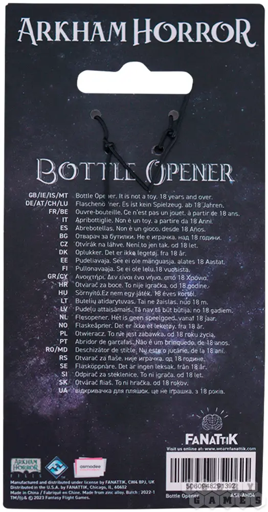 Открывалка имеет эмалированное покрытие и магнит, чтобы всегда была под рукой, но не мешалась. Практичная и стильная вещь для тех, кто знает: в Аркхэме даже самые обычные предметы могут оказаться частью чего-то гораздо большего.