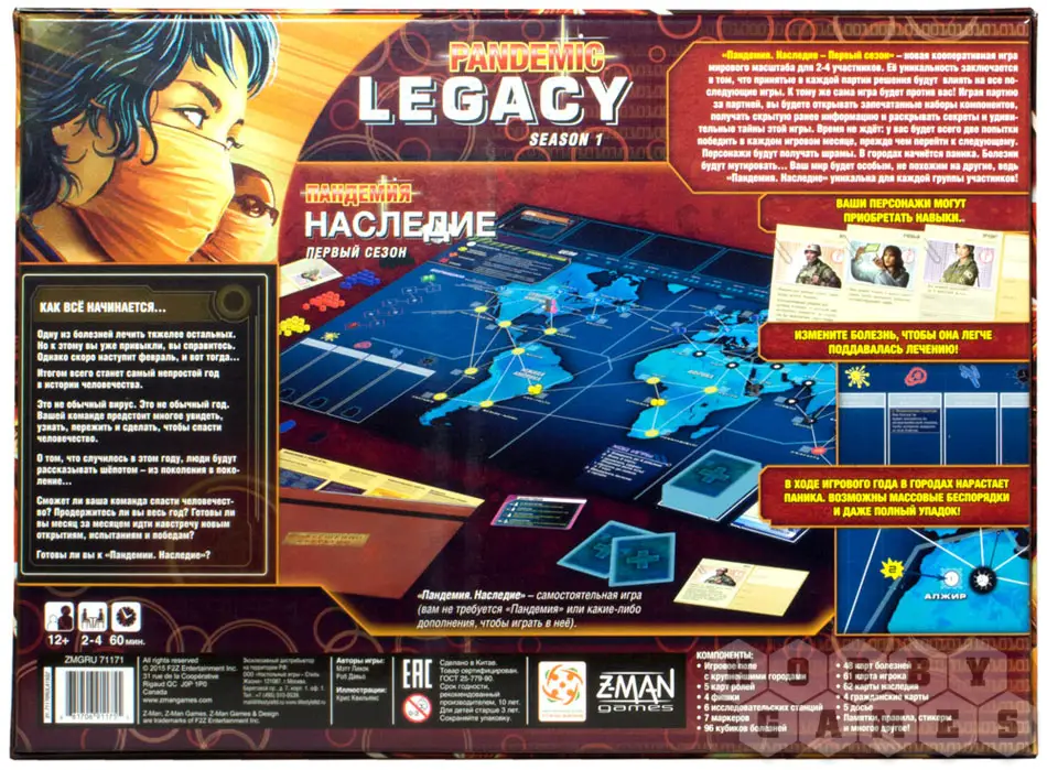 Обращаем ваше внимание, что настольная игра "Пандемия: Наследие" выпускается в двух вариантах коробки – синей и красной. Состав коробок полностью идентичен.