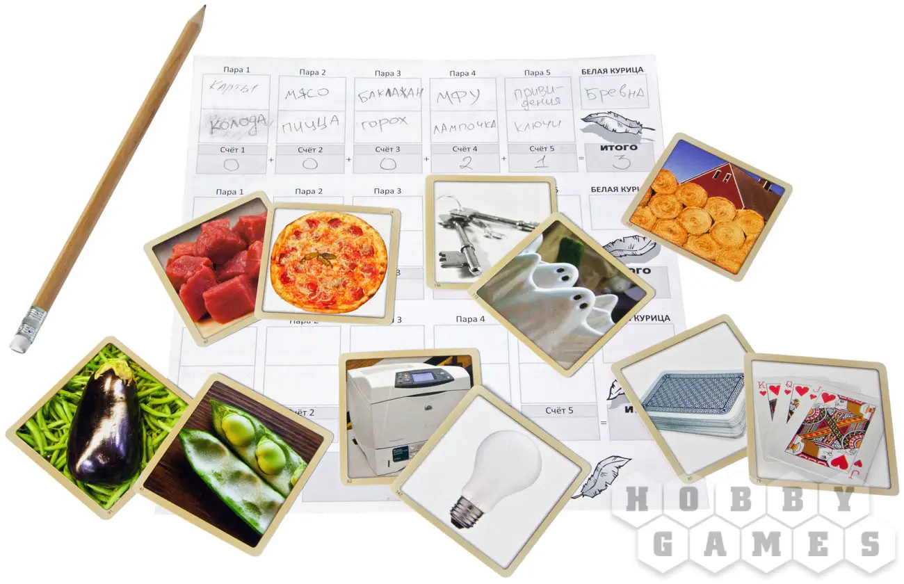 Что может быть проще, чем выбрать пары подходящих друг к другу картинок из стопки случайных? Кисть и портрет, курица и яйцо, обезьяна и банан… Хотя, если присмотреться, то можно найти связь между яйцом и циркулем или даже между слоном и балериной! Вопрос в том – угадает ли эту связь кто-то еще?