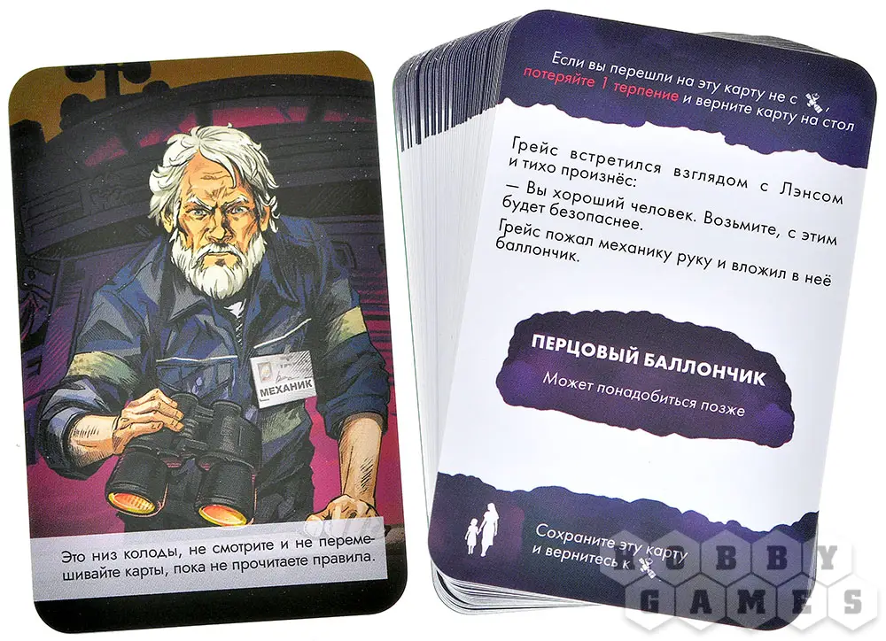 С самого начала вас ждёт погружение в загадочную атмосферу: не заглядывая в колоду, вы формируете стартовую сцену на палубе, определяете запас ресурсов и раскладываете сетку карт-подсказок. Один из игроков становится чтецом, но все вместе вы обсуждаете каждый шаг. На картах с номерами – ваша основная история.