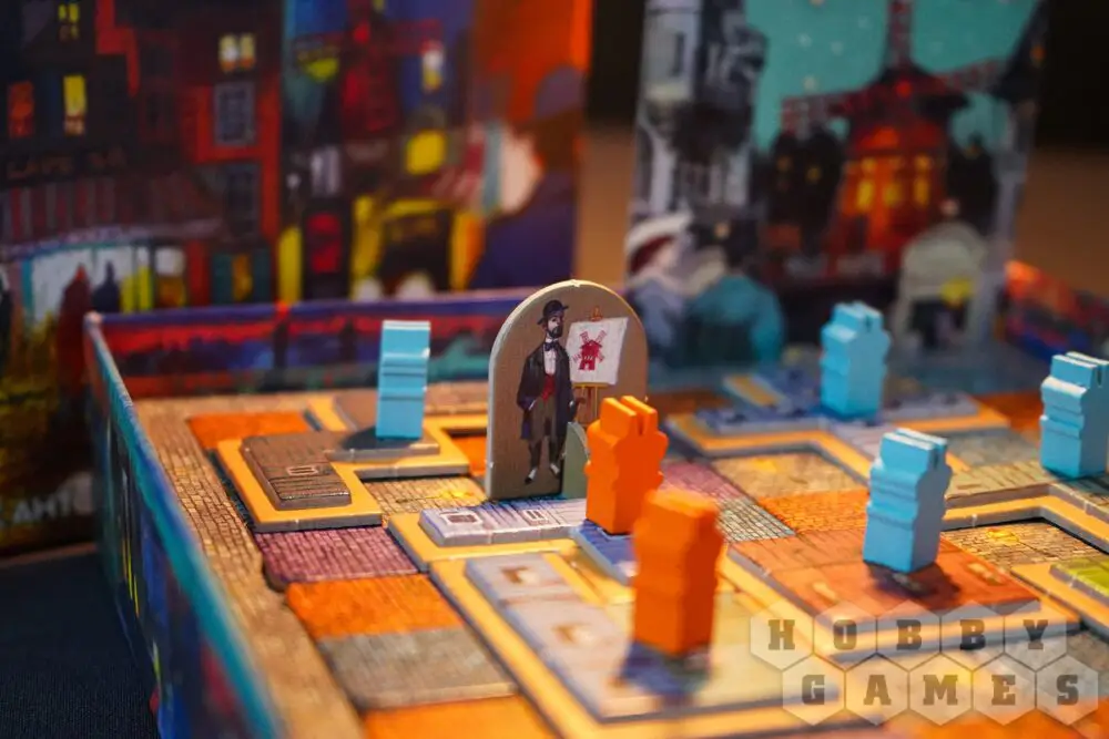 Итак, тайлы мостовой выложены, можно заниматься строительством зданий, расставлять фонари или выполнять уникальные задания, размещенные на настоящих французских открытках. В конце игры вы получаете победные очки за освещенные здания, свой самый большой квартал и некоторые открытки действий, а непостроенные здания приносят штраф.