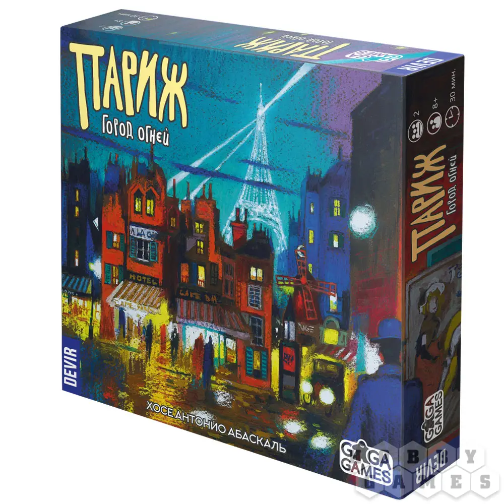 "Париж. Город огней" - абстрактная дуэльная статегия. Французский шарм и эстетика игры никого не оставят равнодушным. Идеально для игры вдвоем при свечах.