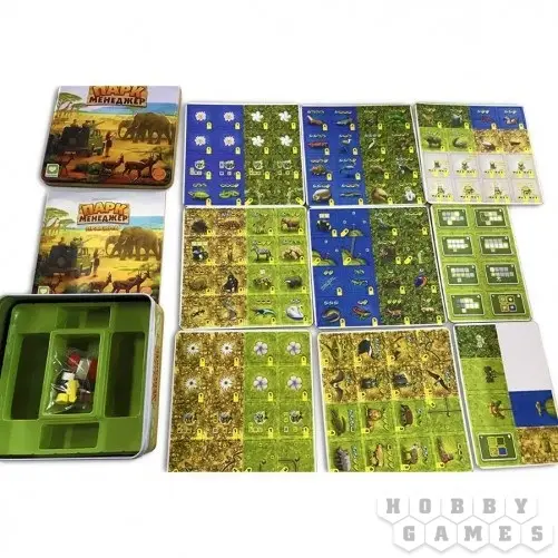 Настольная игра Парк Менеджер предлагает вам стать основателем парка будущего. У вас будет три года, чтобы расширять его территорию согласно нормам и потребностям животных, но при этом не забывать об интересах посетителей. Перед партией маркетологи уже составили план, что именно будет интересовать визитеров в течении этих трех лет, расположив три карточки с дополнительными заданиями.