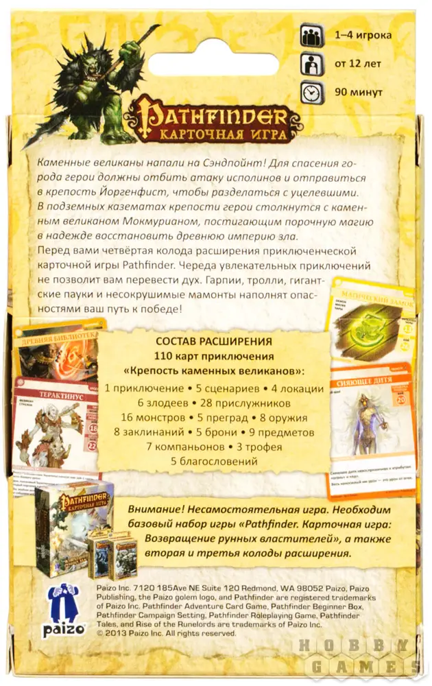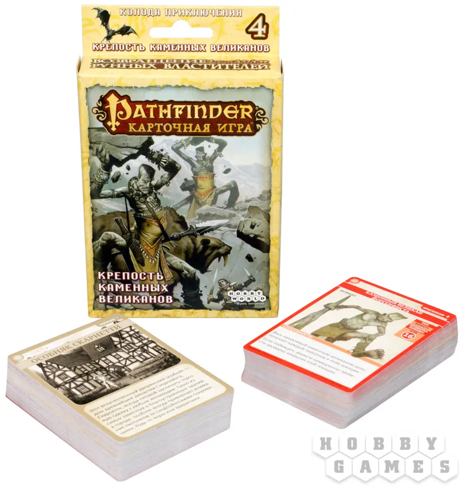 Перед вами четвёртая колода расширения приключенческой карточной игры Pathfinder. Череда увлекательных приключений не позволит вам перевести дух. Гарпии, тролли, гигантские пауки и несокрушимые мамонты наполнят опасностями ваш путь к победе!