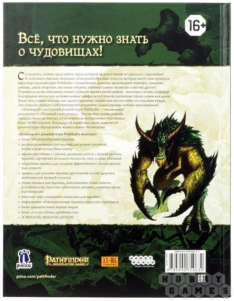 Помимо этого, "Бестиарий" содержит правила по адаптации и изменению существ, так что любой Мастер Игры сможет создавать своих собственных существ и не сломать баланс игры.