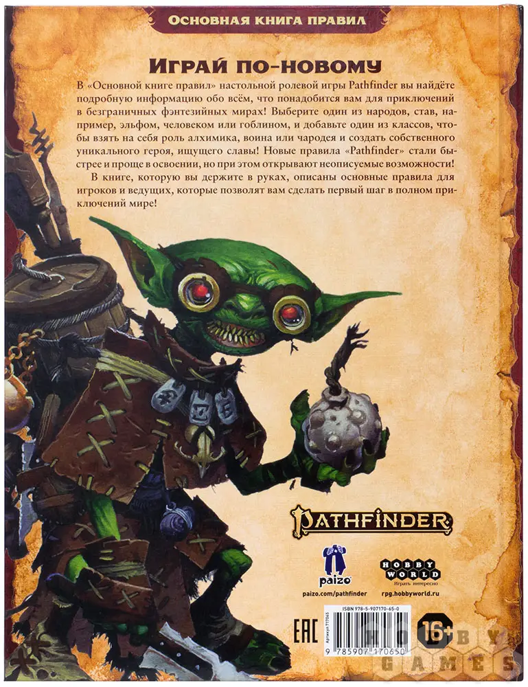 Перед вами – основная книга правил второй редакции Pathfinder, одной из самых популярных настольных ролевых игр в мире. Система Pathfinder появилась на свет в 2009 году и с тех пор успела завоевать сердца миллионов фанатов приключений, фэнтези и ролевых игр. За 10 лет существования системы её авторы получили тонны игрового опыта и отзывов игроков, что позволило им создать обновлённую версию игры – так и появилась вторая редакция Pathfinder. Во второй редакции Pathfinder стала проще в освоении для начинающих игроков, ведь из неё убрали большое количество лишних правил – но это не значит, что игра стала примитивнее. Наоборот, за счёт создания более стройной и логичной системы правил игра стала проще для расширения – теперь вы сможете создать и добавить в игру новый архетип или уникальную способность, привязанную к своей собственной истории. Можно создавать и уникальное оружие или другое снаряжение, комбинируя эффект наносимых на него магических рун. Переработана система заклинаний, особенно тех, которые относятся к классам жрец и монах, а длительные ритуалы, их особенности и эффекты теперь описаны более подробно. Кроме того, изменилась боевая система: каждый герой в фазе боя совершает три универсальных действия, благодаря чему сражения остались такими же тактически вариативными и зрелищными, но уже вряд ли будут длиться часами. Тем не менее, перед вами всё тот же старый добрый Pathfinder со знакомыми народами, классами и игровыми механиками (но во второй редакции вы сможете сыграть за гоблина!).