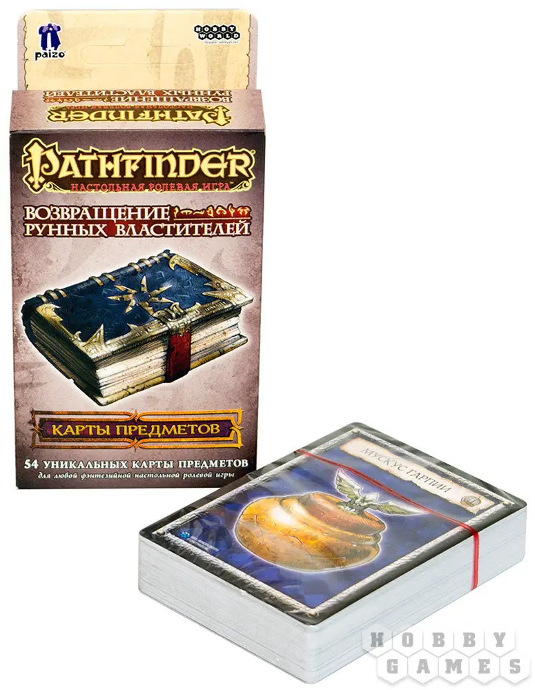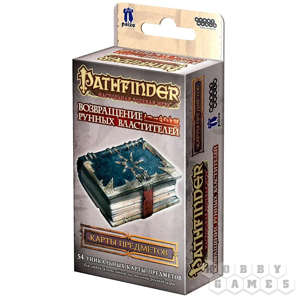 В этой упаковке вас ждут настоящие сокровища! Артефакты рунных властителей вскоре найдут новых, более достойных хозяев! В этом наборе вы найдёте 54 карты сокровищ и предметов, созданные для кампании "Возвращение рунных властителей", однако данные карты подойдут и для приключений в любом другом фэнтезийном мире. Помимо изображения, на картах есть уникальный код, который позволит мастеру отслеживать ключевую информацию о предметах, а для игроков есть место для записей.