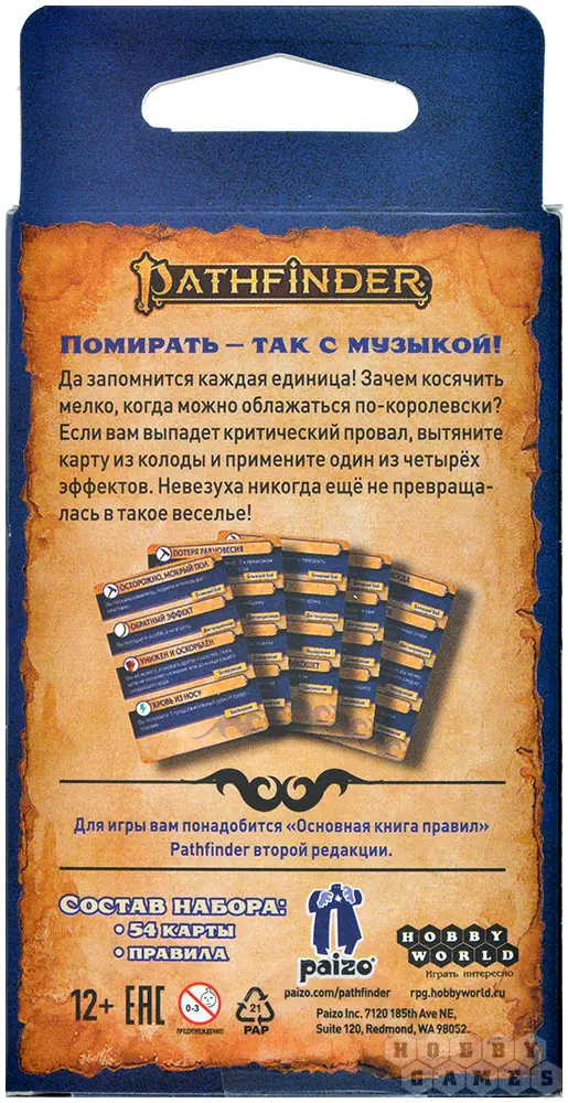 Настольная ролевая игра Pathfinder основана на более чем десятилетнем опыте развития ролевых систем при открытом тестировании с участием свыше 50 000 игроков со всего мира. Pathfinder – это невероятный ролевой опыт, доступный каждому.