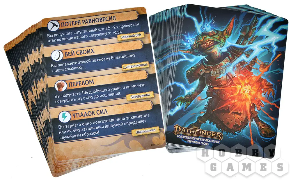 В этом наборе вы обнаружите 54 карты критических провалов, которые добавят непредсказуемость и интригу в вашу игру. Они заставят игроков осторожнее принимать решения, ведь любой шаг может привести к неожиданным последствиям. Дайте волю воображению, а карты критических провалов помогут создать запоминающиеся сюжетные повороты!