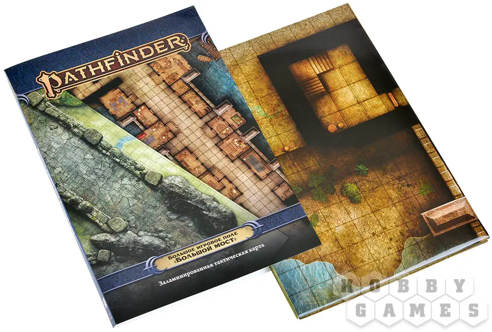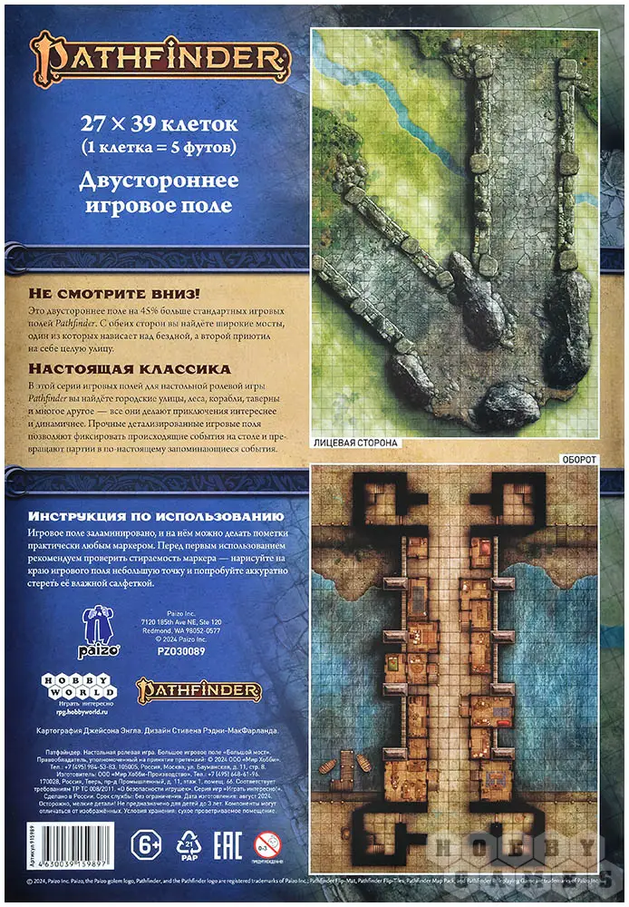 С одной стороны – мост, нависающий над бездной. С другой – целая улица с домами. Обе иллюстрации позволяют разыгрывать множество различных игровых ситуаций, а благодаря крупному формату (это поле на 45% больше стандартных полей Pathfinder!) вы сможете эффективно использовать каждый его сантиметр и просто получать эстетическое удовольствие.