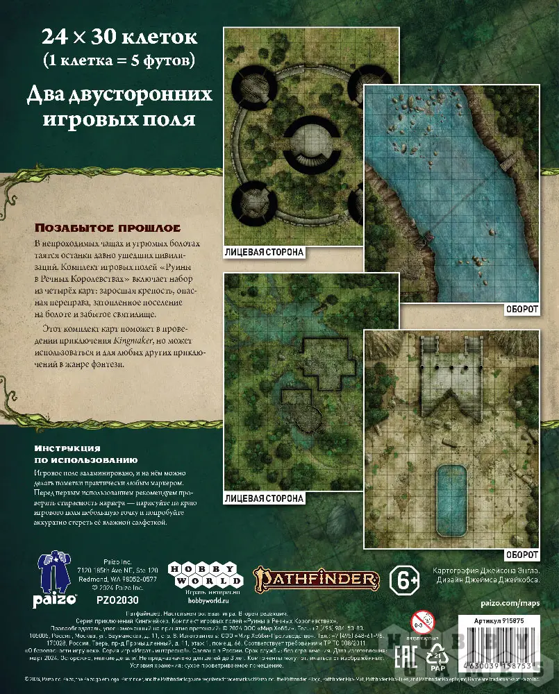 Этот комплект игровых полей идеально подходит для проведения приключения Kingmaker, но на этим его возможности не ограничиваются. Используйте его для любых фентезийных кампаний, чтобы добавить глубину и реализм в ваши истории!