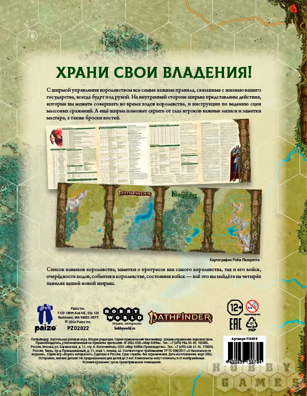 Список навыков королевства, заметки о прогрессе, очерёдность ходов и события – всё это уютно разместилось на четырёх панелях ширмы. Пусть она станет вашим верным проводником в мире приключений, вашим защитником и советником!