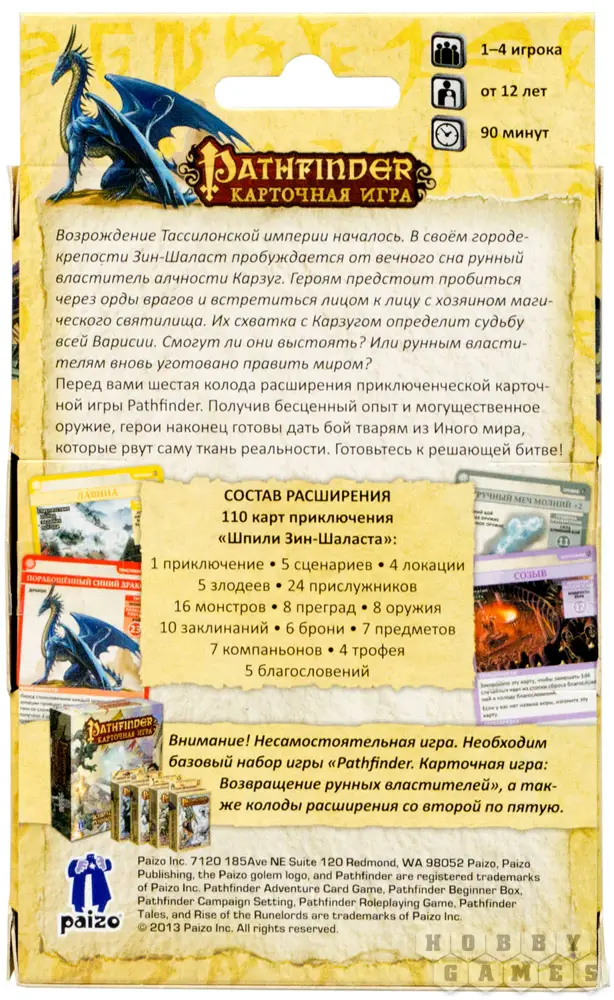 "Pathfinder. Карточная игра. Возвращение Рунных Властителей" – это кооперативная карточная настольная игра-приключение, построенная на классической ролевой системе Dungeons & Dragons. Игрокам предлагается бросить вызов и одолеть саму игру, которая будет противостоять вам и вашим товарищам. И победить будет очень не просто!