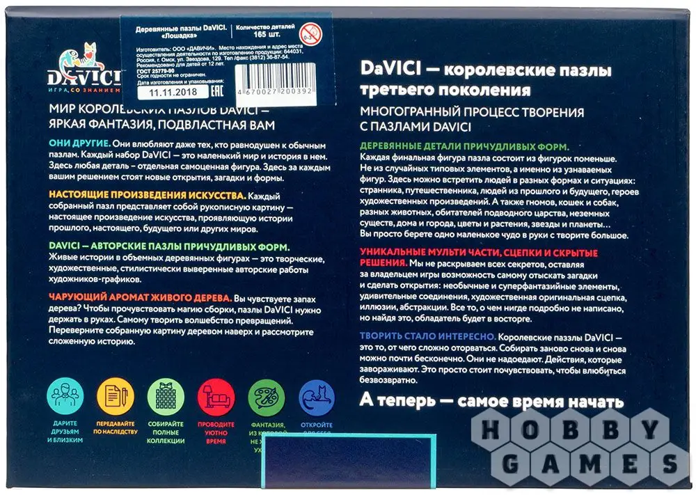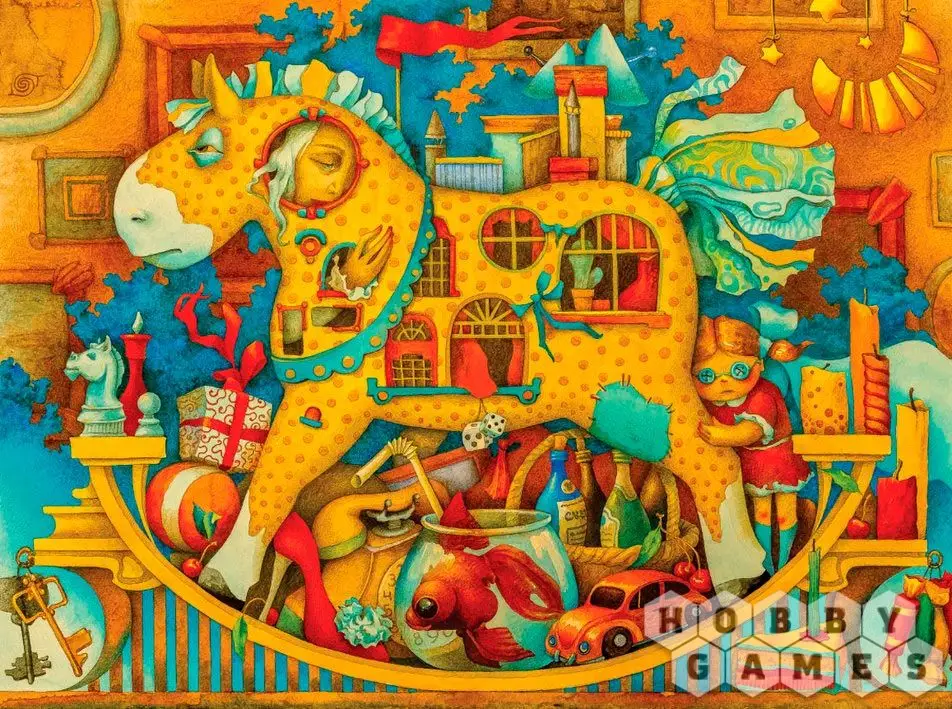 Каждая деталь игры – это самостоятельная миниатюра, которая образует другие сложные образы. Погрузитесь в фантазии, экспериментируйте с формами, превращайте мишку и клоуна в бравых кавалеристов. А ещё Вас ждёт особая загадка – лошадка-домик, которую ещё придётся найти!