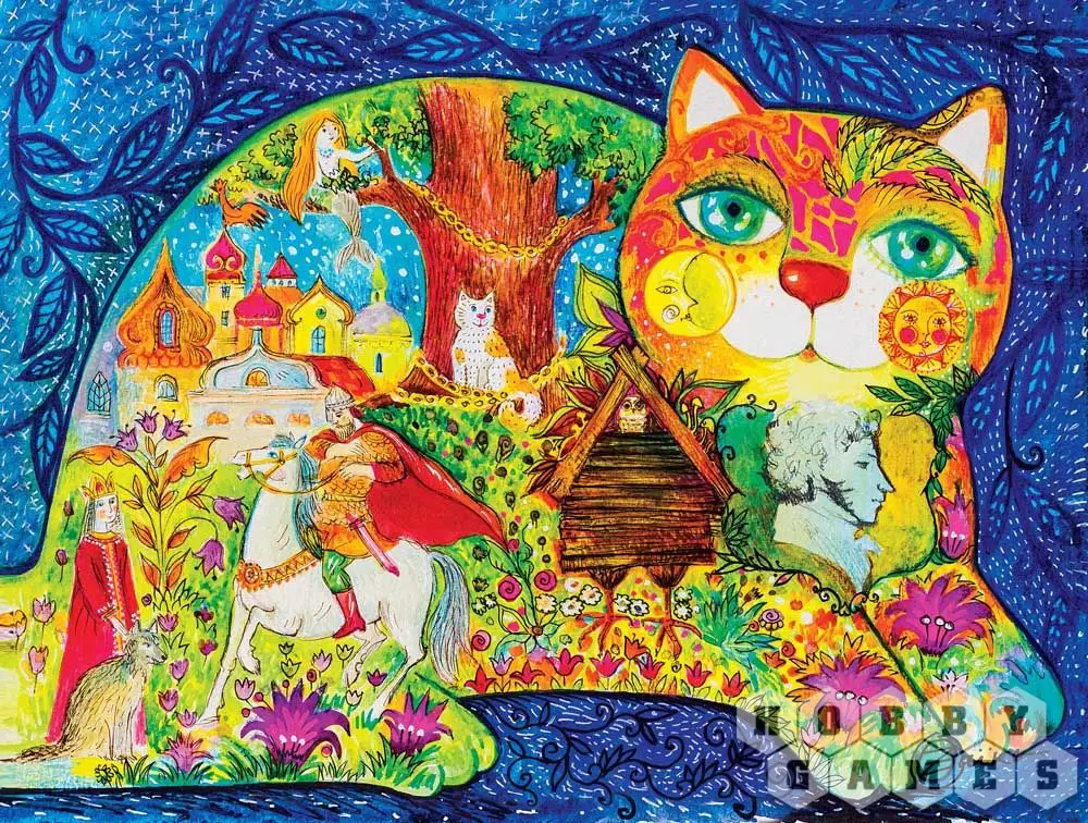 Ученый кот, золотая рыбка, русалка, Баба-Яга, избушка на курьих ножках замерли на деталях пазла в ожидании, когда их части соединятся. Соединятся, чтобы рассказать хорошо известные каждому, сказки бессмертного русского классика. Авторская картина, изображенная на пазле, отсылает Вас к действующим лицам замечательных сказок – жемчужинам отечественной литературы. Пазл создает неповторимую сказочную атмосферу волшебства и загадочности в таинственном мире сказок.