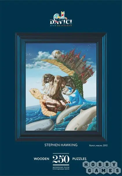 Эволюция теории возникновения Вселенной от мифологических сказаний до современной космологической теории. Переход в понимании естества выражен в портрете Стивена Хокинга, скрытом в композиции.