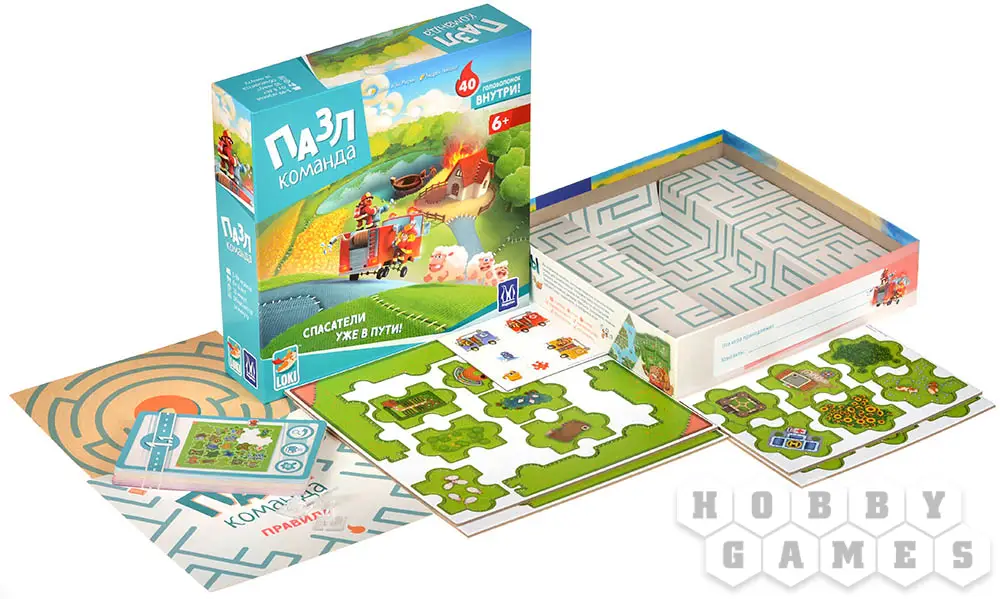 "Пазл-команда" – это настольная игра для детей, в которой игрокам предстоит решать головоломки, правильно складывая детали пазла. Им необходимо проложить маршрут пожарной машины до места происшествия, но чем дальше будут решаться головоломки, тем сложнее это будет сделать. Это кооперативная игра, так что решать головоломку могут неограниченное число игроков! А это значит, что помимо логического и пространственного мышления, игра благотворно влияет и на навыки общения юных игроков, ведь нельзя работать в команде, не обсуждая свои мысли!