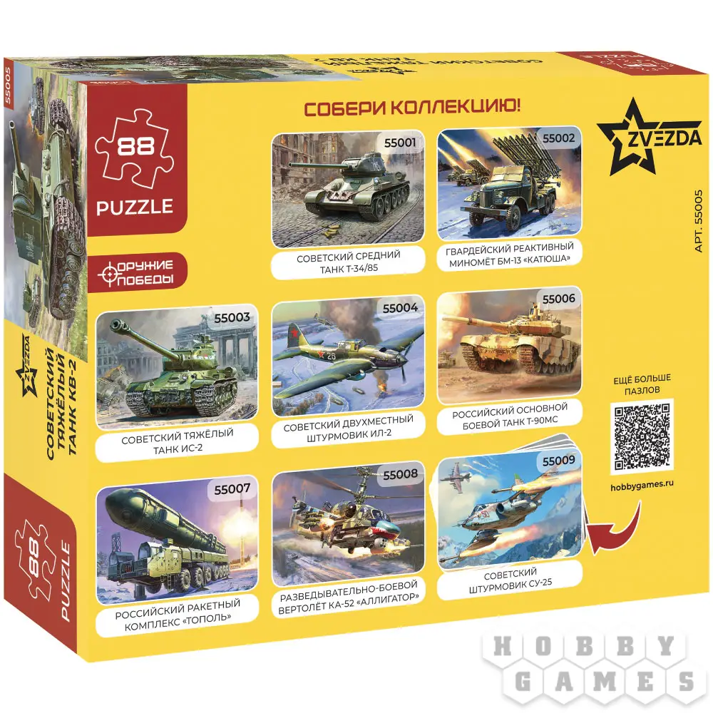 Увлекаетесь сборными моделями? Интересуетесь историей и военной техникой? А может, вас просто увлекает методическое собирание мелких деталей в единую картинку? Если хотя бы один из пунктов попал в точку, вам наверняка придутся по вкусу пазлы от Zvezda! Благодаря им вы отправитесь в увлекательное путешествие сквозь время. Легендарные танки, знаменитые истребители, скоростные штурмовики – теперь к каждой уже имеющейся в вашей коллекции сборной модели вы сможете добавить тематический пазл! А профессиональные иллюстрации Андрея Жирнова помогут создать исторически достоверную атмосферу – ведь каждый элемент, каждая линия этой головоломки пропитаны духом эпохи. Вы будете не просто соединять детали – вам предстоит изучать инженерные решения прошлого, тренировать внимательность и получать ни с чем не сравнимое удовольствие от создания картины своими руками.