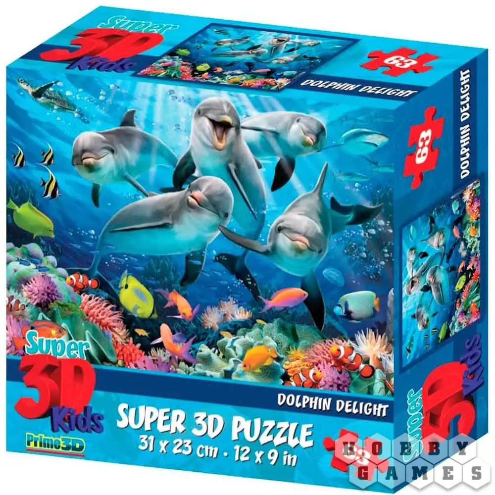 Перед вами классические пазлы, после сборки которых вы сможете наблюдать трёхмерный стереоэффект готовой картинки. Серия суперпазлов 3D от компании Prime3D включает в себя наборы с разной степенью сложности сборки, несколькими размерами собранного полотна. Также пазлы отличаются количеством и размерами элементов. Сборка пазлов требует внимания и усидчивости, тренирует ловкость и моторику пальцев.