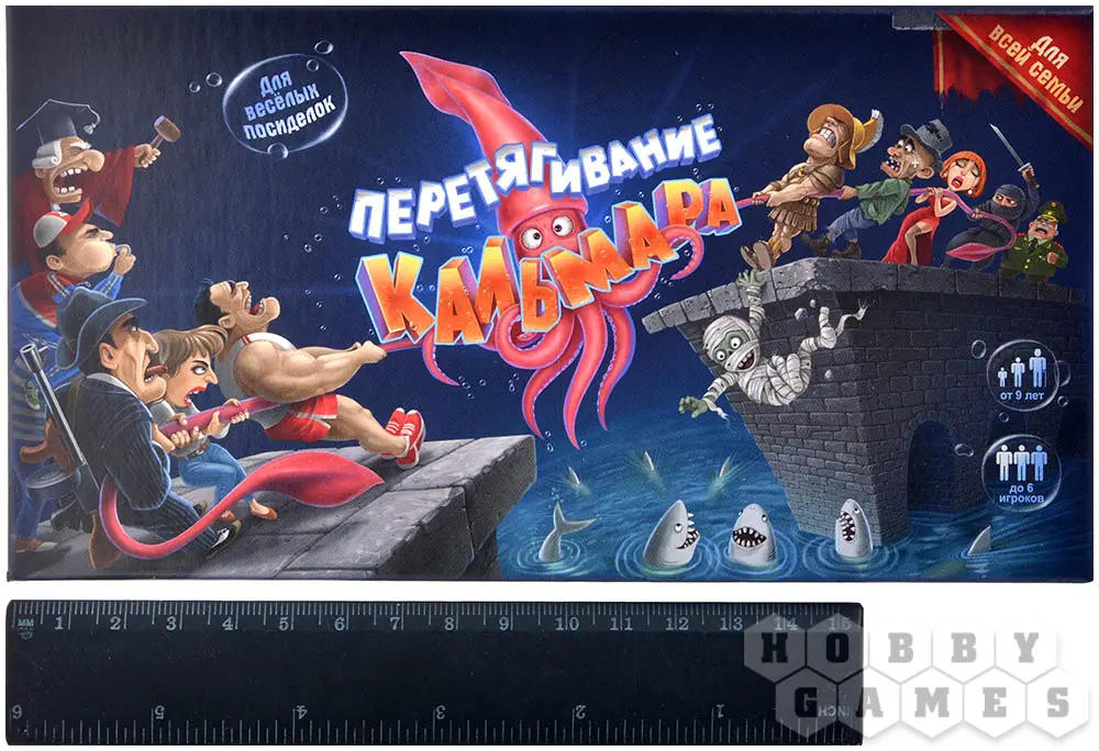 Настольная игра "Перетягивание Кальмара" для 2-6 человек предлагает игрокам выяснить, какая из двух команд круче и сильнее. Проигравшие, увы, отправятся на морское дно.