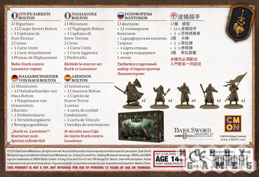 Этот набор содержит 13 миниатюр в пяти различных позах. От каждой миниатюры веет страшной злобой солдат Болтонов.