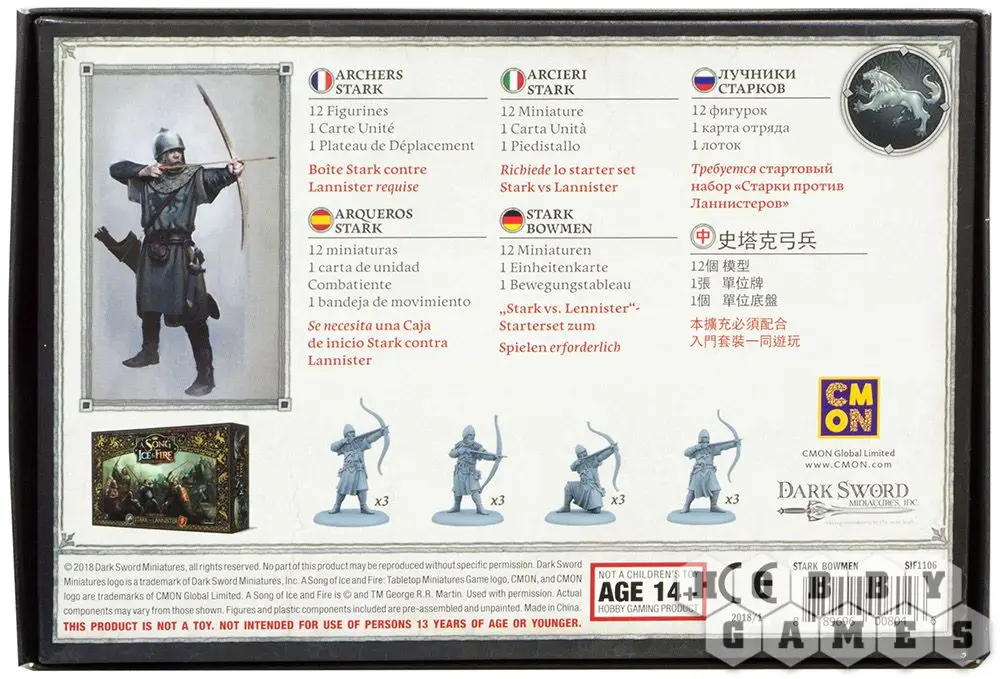 "Лучники Старков" – это боевой отряд для игры "Песнь льда и огня", который выступает на стороне Старков и обеспечивает дальнобойную стрельбу в армии этого дома. Одетые в лёгкую броню и практически бесполезные в рукопашной схватке, но их способность поливать врагов стрелами компенсирует эти недостатки. Главное отличие от арбалетов – из лука можно стрелять, не видя врага перед собой, игнорируя правило прямой линии обзора. Они мастера дальнего боя и, если дать им возможность прицелиться, количество выпущенных стрел увеличится.