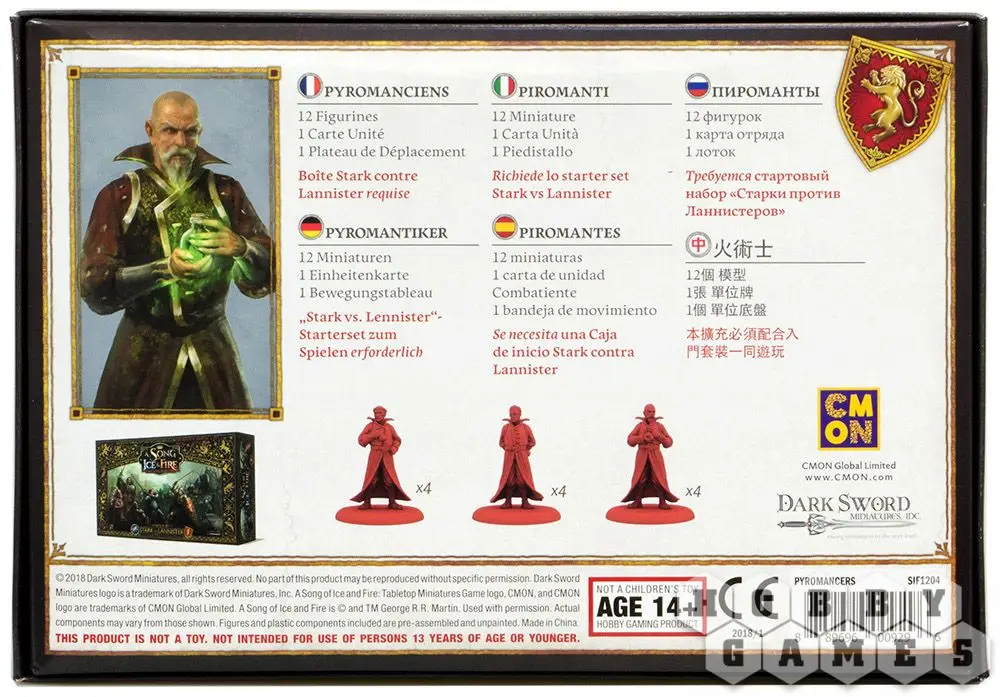 "Пироманты" – это боевой отряд для игры "Песнь льда и огня", который выступает на стороне Ланнистеров. Они практически беззащитны и не обладают высоким боевым духом. Главное их преимущество – это атака, которая производится на короткое расстояние и игнорирует любую броню на своём пути. Будучи атакованными "Диким Огнём", противники становятся деморализованными и получают штрафы к броскам на проверку боевого духа.