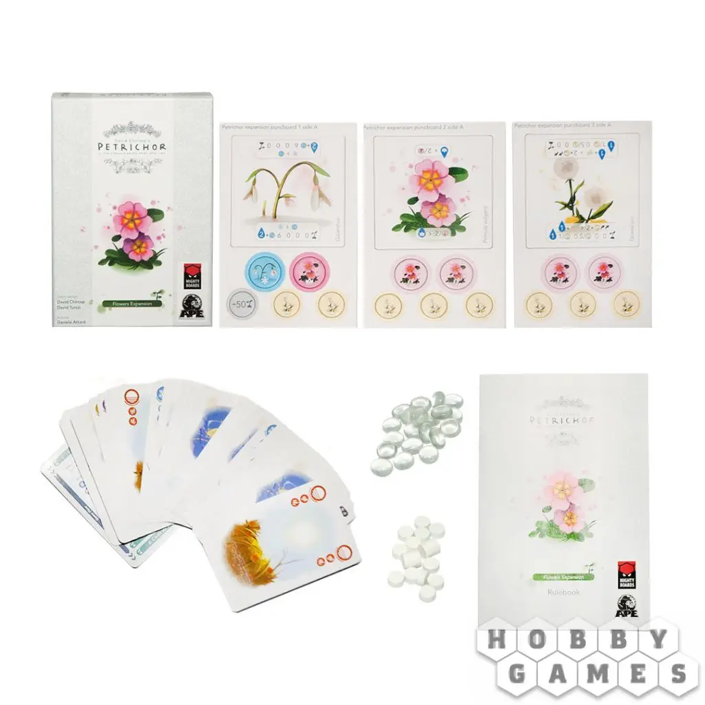 Petrichor Flowers Expansion – это дополнение для стратегической игры "Петрикор". Здесь вы найдёте три новых модуля, которые будут отлично сочетаться с базовой комплектацией. Появились участки с цветами, новые свойства игрока, и добавились карты прогноза погоды. Дополнение рассчитано на пятерых участников, а в правилах игры вы найдёте рекомендации для такого состава игроков. С этим набором в вашем доме всегда будет весна – время пушистых одуванчиков и нежных подснежников.