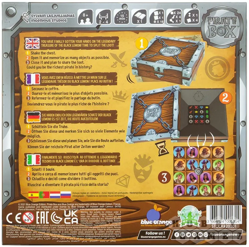 Pirate Box – это веселье и тренировка для ума в одной коробке. Игра подходит для абсолютно любой компании вне зависимости от возраста, ведь развивать память полезно всегда, а веселье и смех, как известно, продлевает жизнь!