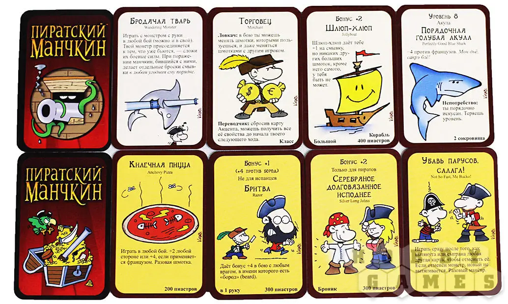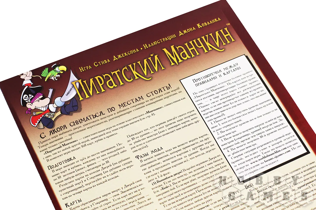 Пришла пора выбивать двери, уничтожать монстров и добывать сокровища на просторах семи морей! Теперь манчкины – просоленные мореплаватели, разговаривающие с самыми кошмарными акцентами, на какие только способны. Вперёд, окунёмся в "Пиратский Манчкин"!