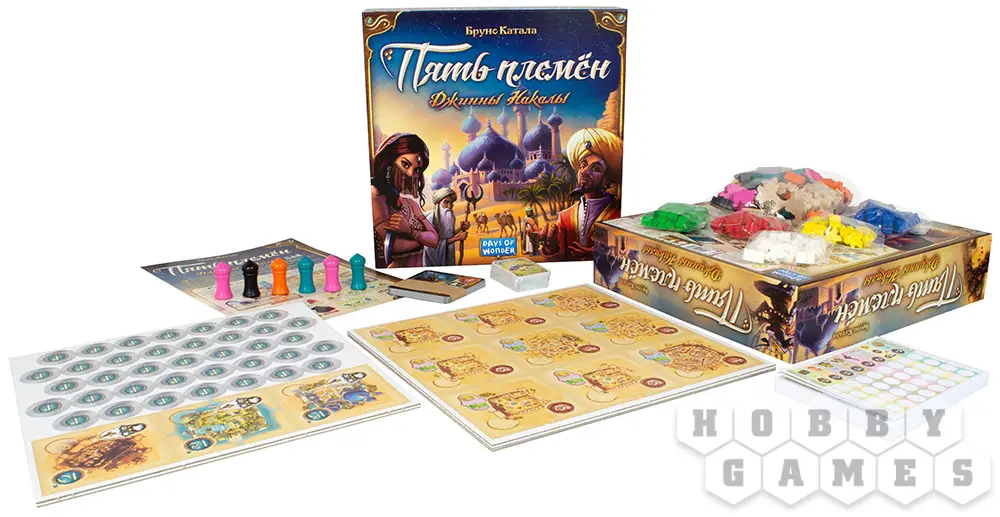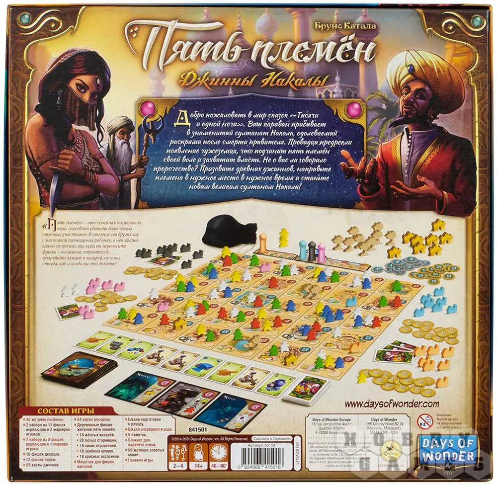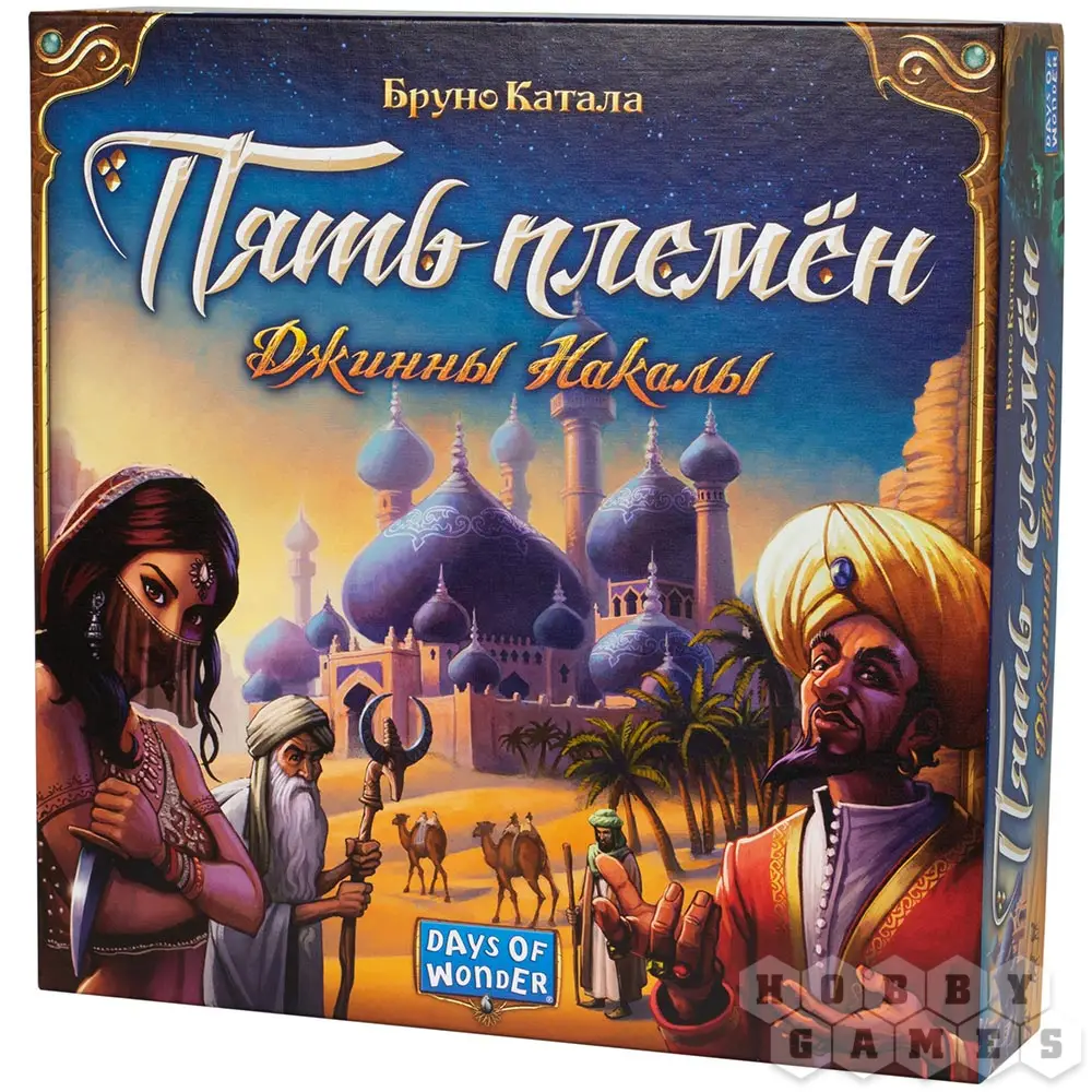 "Пять племён" – это настольная стратегия в сеттинге восточного фэнтези, где органично переплетаются арабская культура и сказочные мотивы. Зарабатывайте уважение племён, торгуйте, стройте, подсылайте ассасинов, ведь цель оправдывает средства. В основе игры – механики традиционной восточной игры "Манкала", органично встроенные в политическое состязание за титул султана. Используйте все возможности, чтобы стать богаче и влиятельнее, но не забывайте мешать противникам сделать это лучше вас!