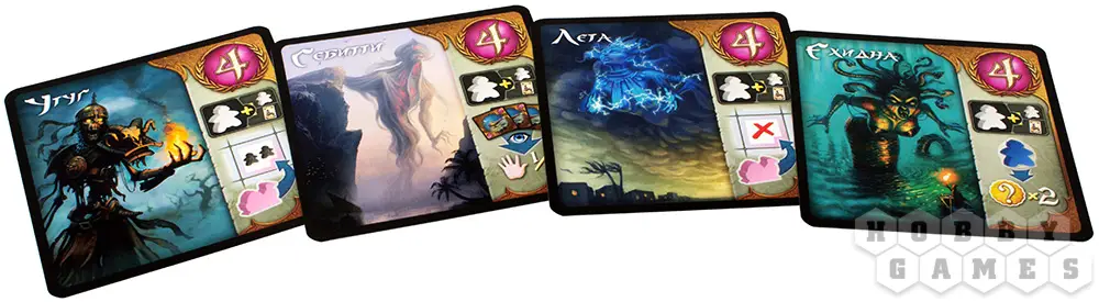 Размер больших карт: 80x80 мм (рекомендуются данные протекторы, 22 шт.)