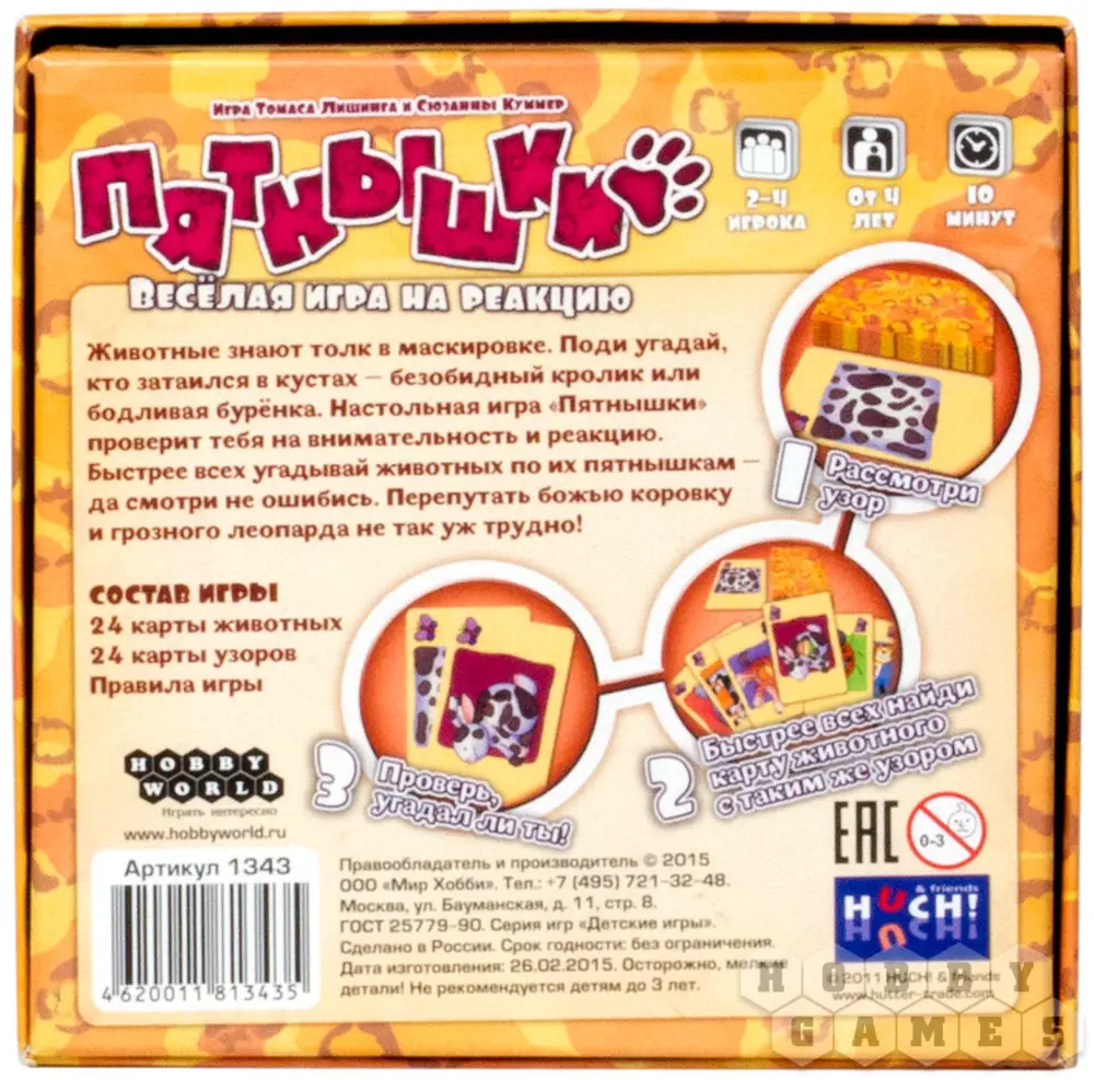 «Пятнышки» — это быстрая весёлая детская игра для 2-4 игроков, которые готовы с ловкостью леопарда угадать, какое животное спряталось за кустом. Его пятнышки вам помогут в этом нелёгком деле. Быстрее всех определите животное и проверьте свою догадку. Кто же спрятался? Сейчас мы быстро его отыщем!