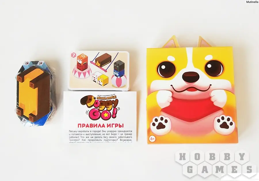 В ушастой и милой коробке скрываются 28 активных кубических пёсиков и 52 двухсторонние карточки с заданиями. А это более 100 увлекательных головоломок и совсем безграничное удовольствие.